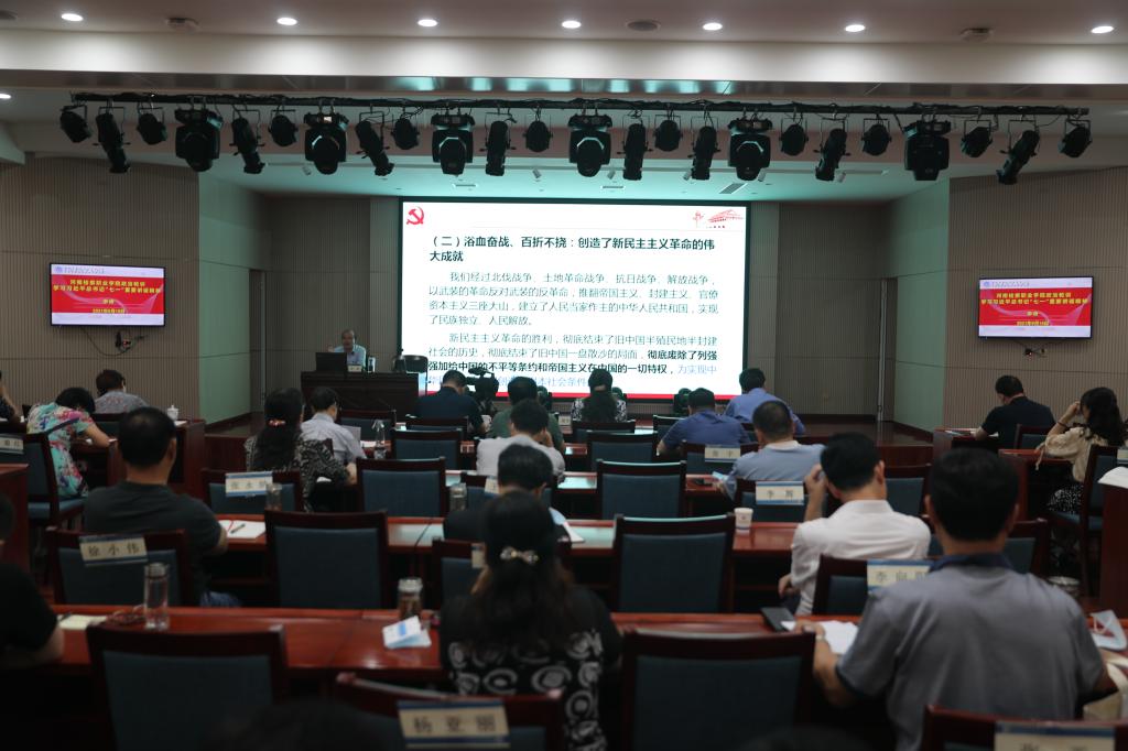9月15日下午,省委党校科社教研部副主任、副教授李涛作了题为《学习习近平总书记“七一”重要讲话精神》的专题辅导报告。李涛副教授对“深入领会党团结带领人民不懈奋斗的光辉历程和伟大成就”“深入领会伟大建党精神的深刻内涵和时代价值”“深入领会以史为鉴、开创未来的根本要求”等三方面内容进行了系统讲解,深刻阐述了习近平总书记“七一”重要讲话精神的重大意义、主要内容和丰富内涵。